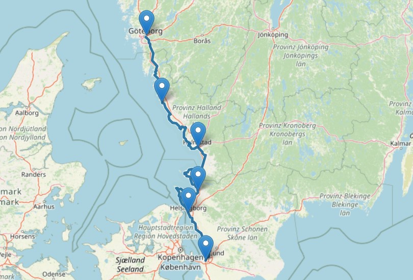 Am vierten Tag führt uns die Strecke von Ängelholm nach Helsingborg, eine Etappe, die wieder entlang der Küste verkäuft und mit einer abwechslungsreichen Landschaft aufwartet. Nach dem Verlassen von Ängelholm fahren wir zunächst durch offene Felder und sanft gewellte Hügel, wobei sich immer wieder Ausblicke auf die Küste und das Meer bieten. Die Route verläuft durch charmante kleine Orte und landwirtschaftlich geprägte Gegenden, die uns ein Gefühl von Ruhe und Abgeschiedenheit vermitteln.
